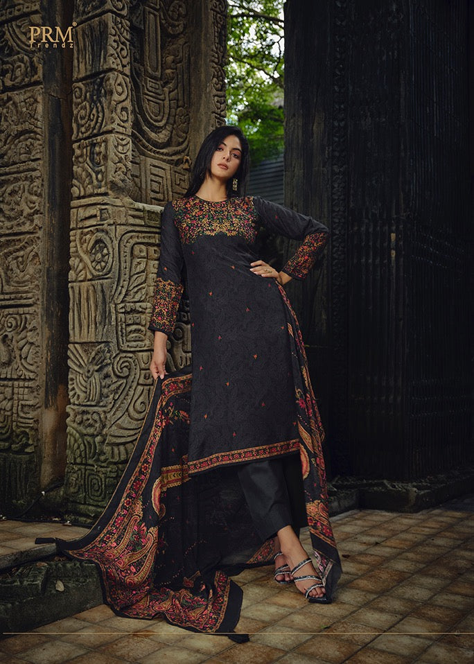 Prm Trendz Haajat Muslin Silk Digital Print With Designer Work Suits