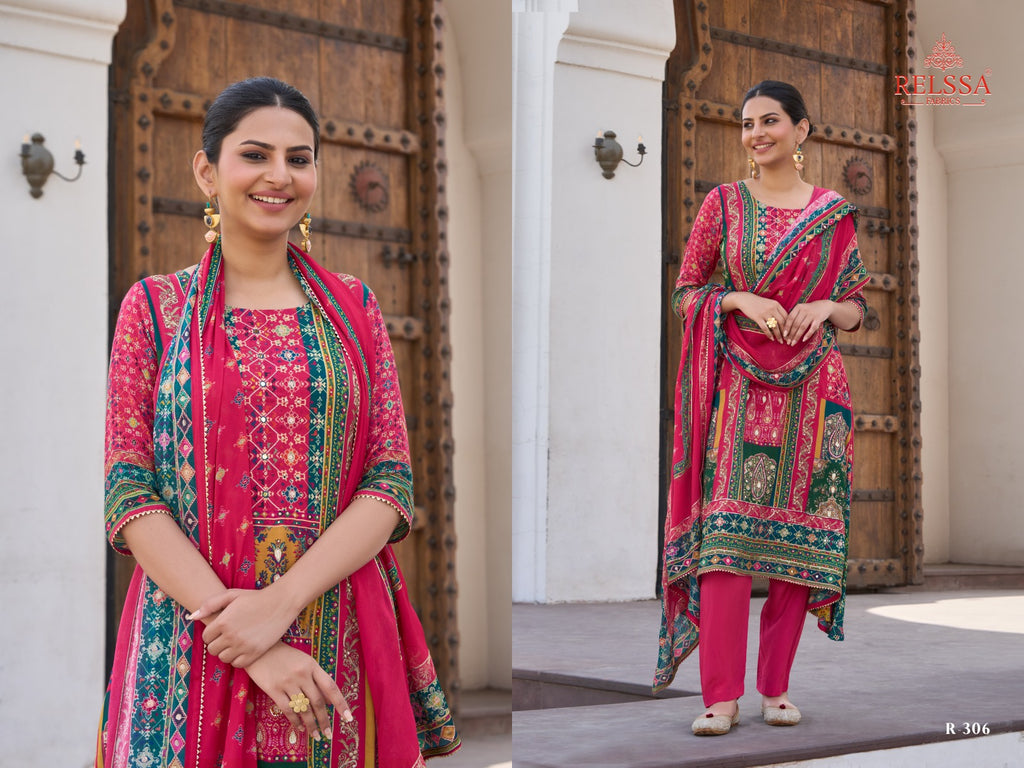 Top: Muslin Fancy Handwork With Digital Prints Bottom: Muslin Dupatta:Chiffon Chinnon Handwork |