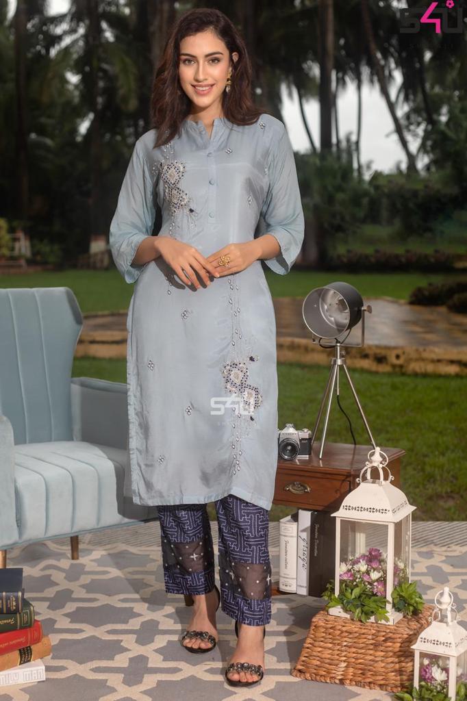 Make this beautifully handworked Kurta & printed embellished pants a perfect choice for the upcoming festival. S4U by Shivali launches *limelight* relish the timeless essence and exotic craftsmanship of these garments…. Fabric- Muslin |