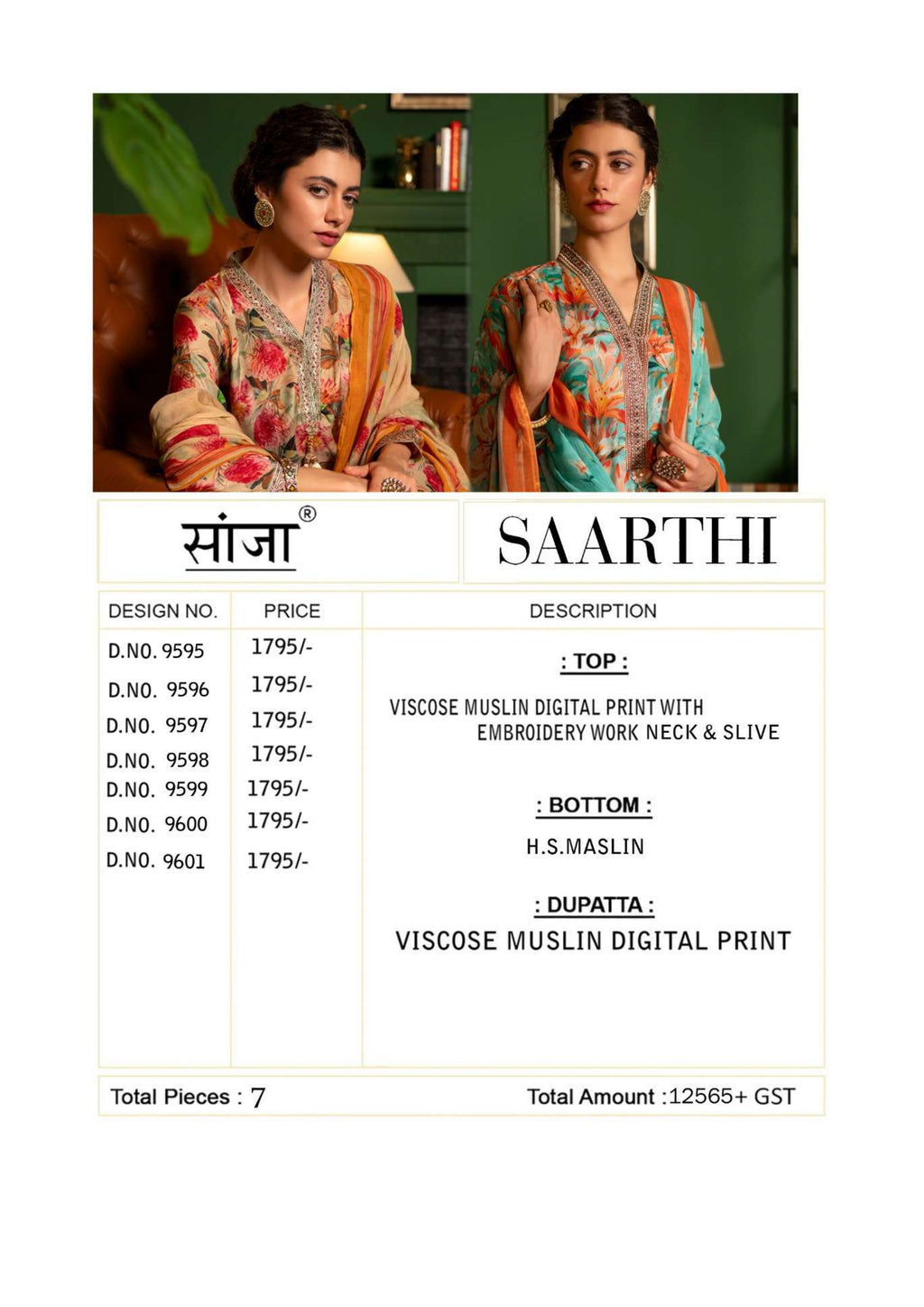 Top: viscose muslin digital print with embroidery work neck and sleeve Bottom: heavy muslin Dupatta: viscose muslin digital print |