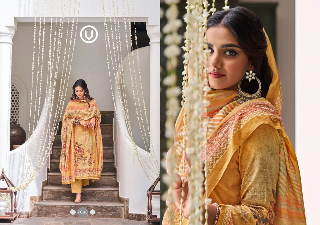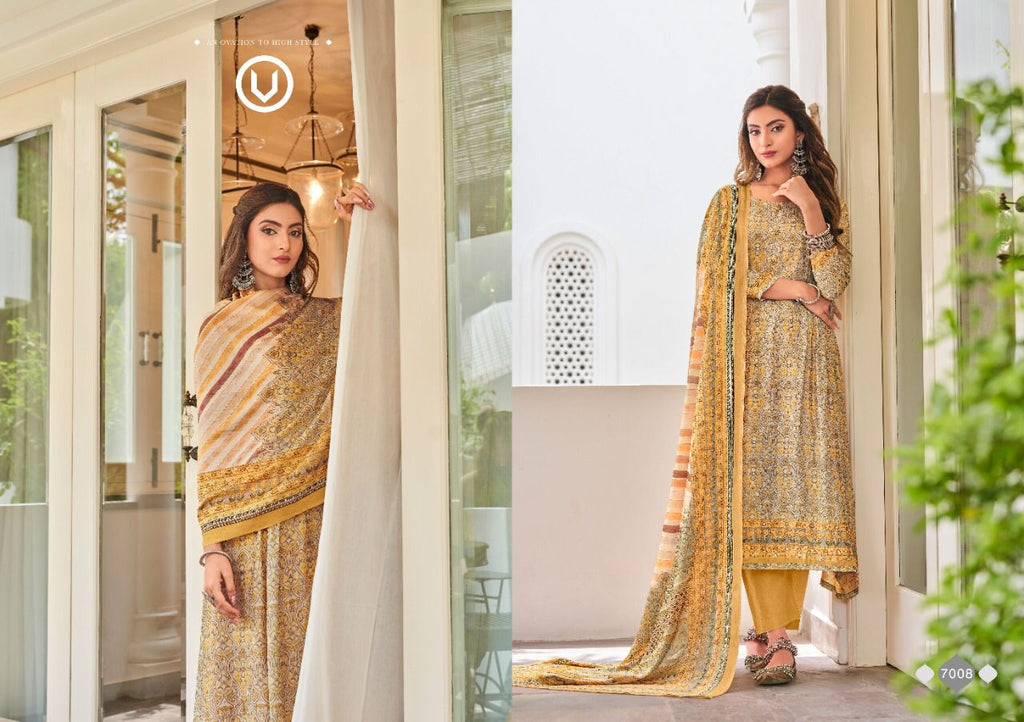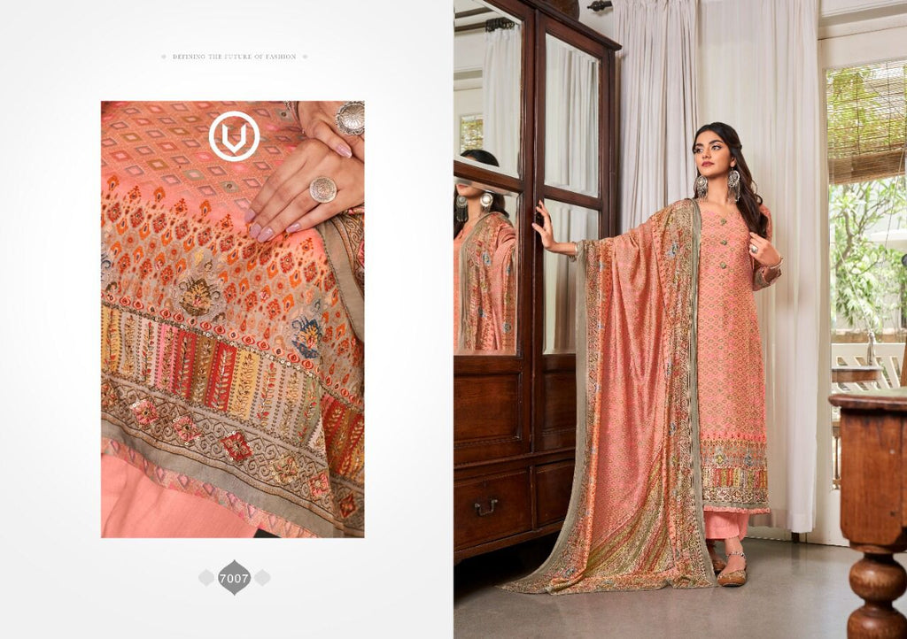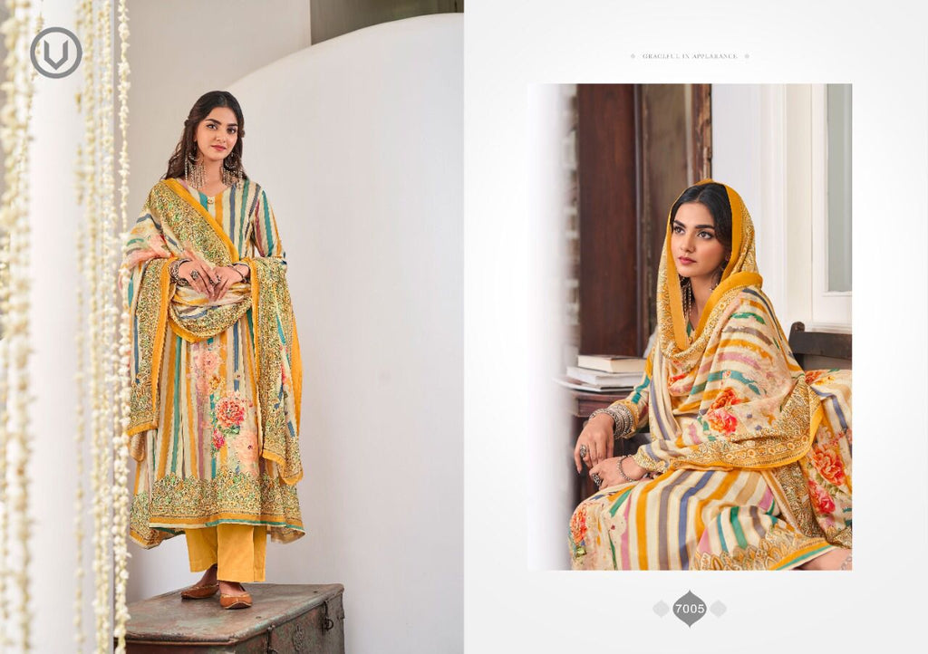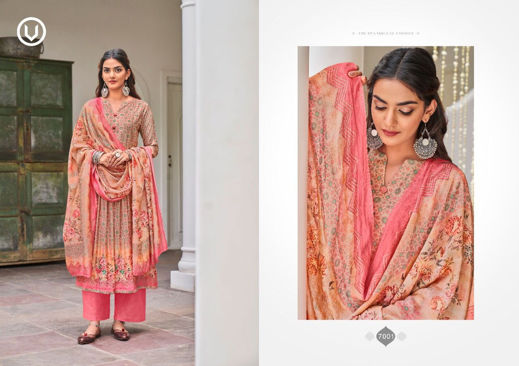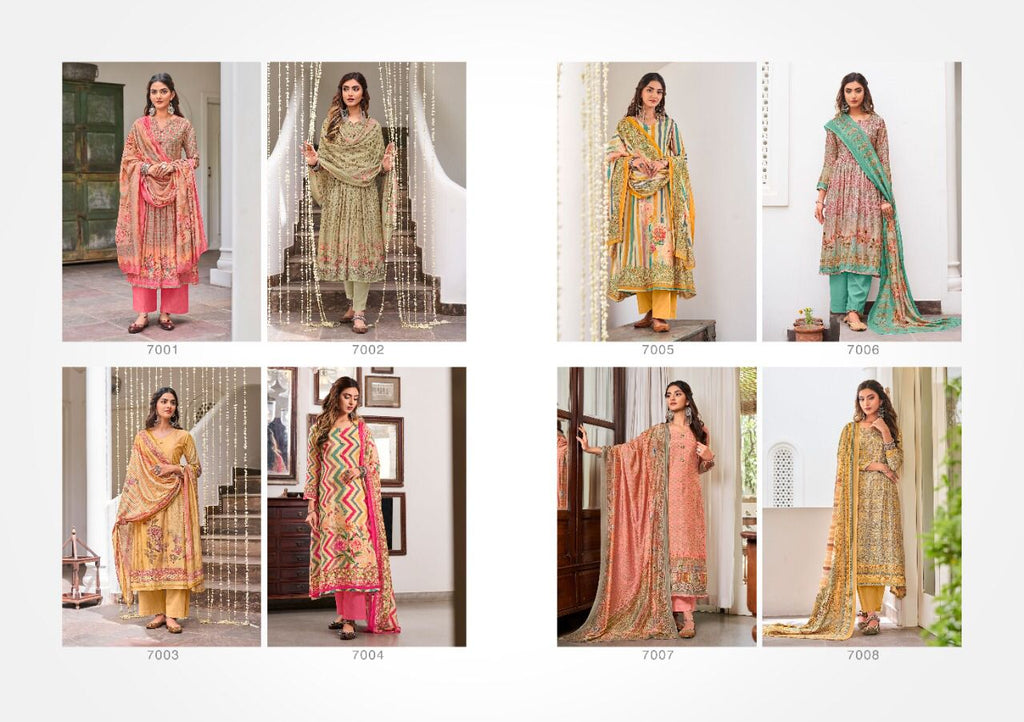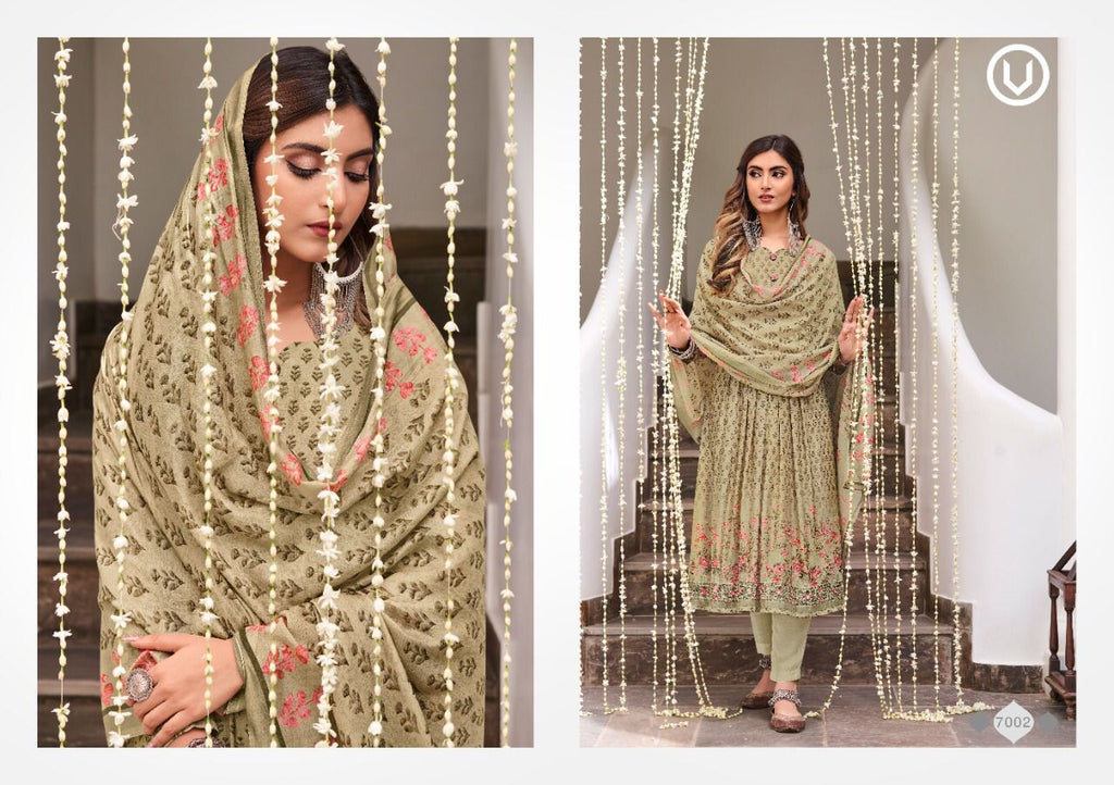 Vivek Fashion Dno 7001 To 7008 Muslin With Print Heavy Embroidery Work Stylish Designer Salwar suit
