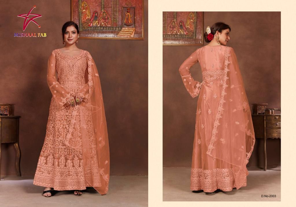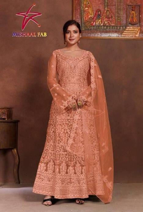 Mishaal Fab Dno 2003 Net With Heavy Embroidery Work Stylish Designer Pakistani Long Gown
