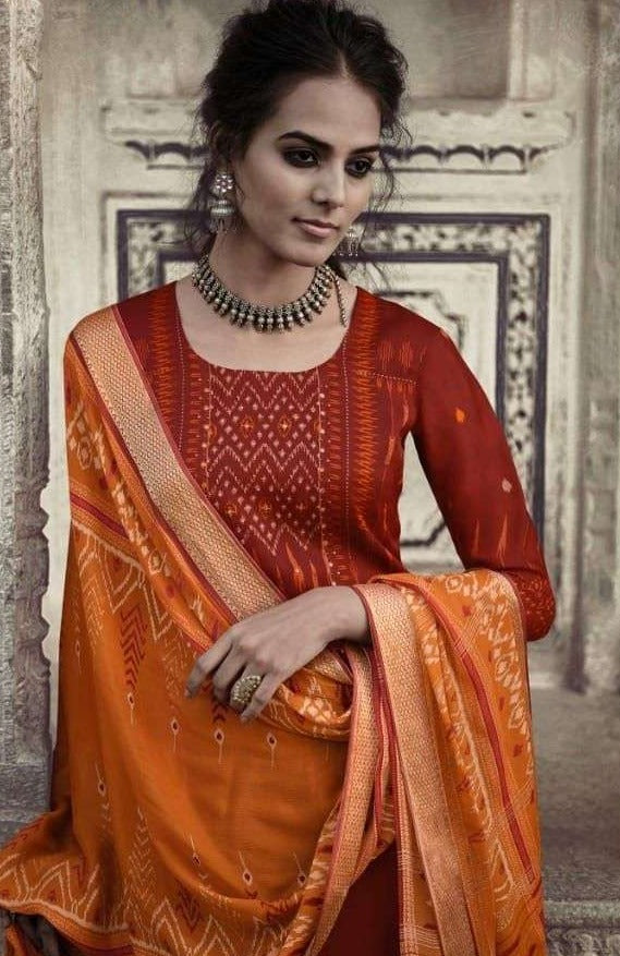 Fabric Details : Top : Organza Satin Silk With Digital Print & Hand Work Bottom : Canvas Satin Dupatta : Chinon Chiffon Jacquard Border |