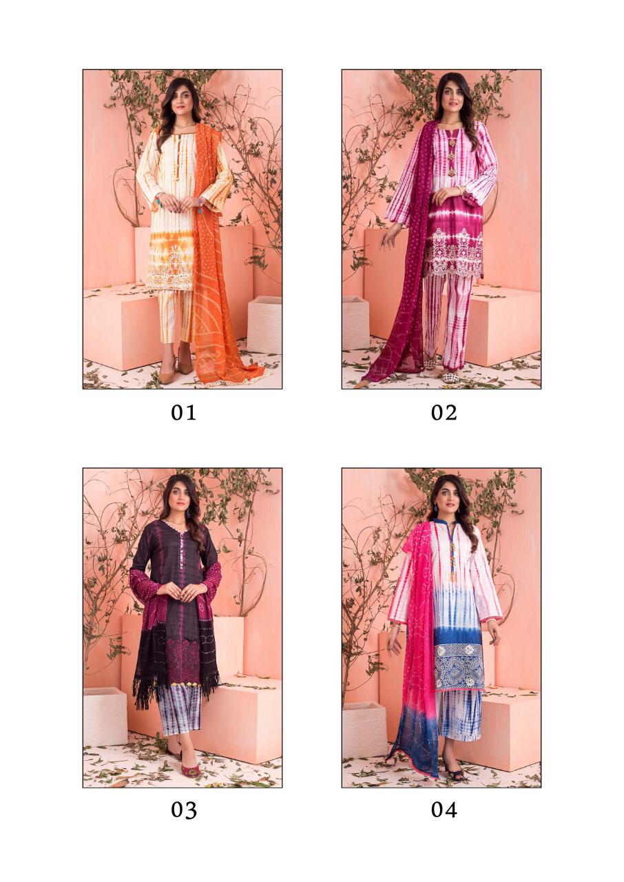 Fabric Details : Top: Cambric Cotton With Self Embroidery ( 2.40 Mtrs) Bottom : Printed Cotton ( 2.30 Mtrs) Dupatta : Pure Mal Mal Printed ( 2,25 Mtrs ) |