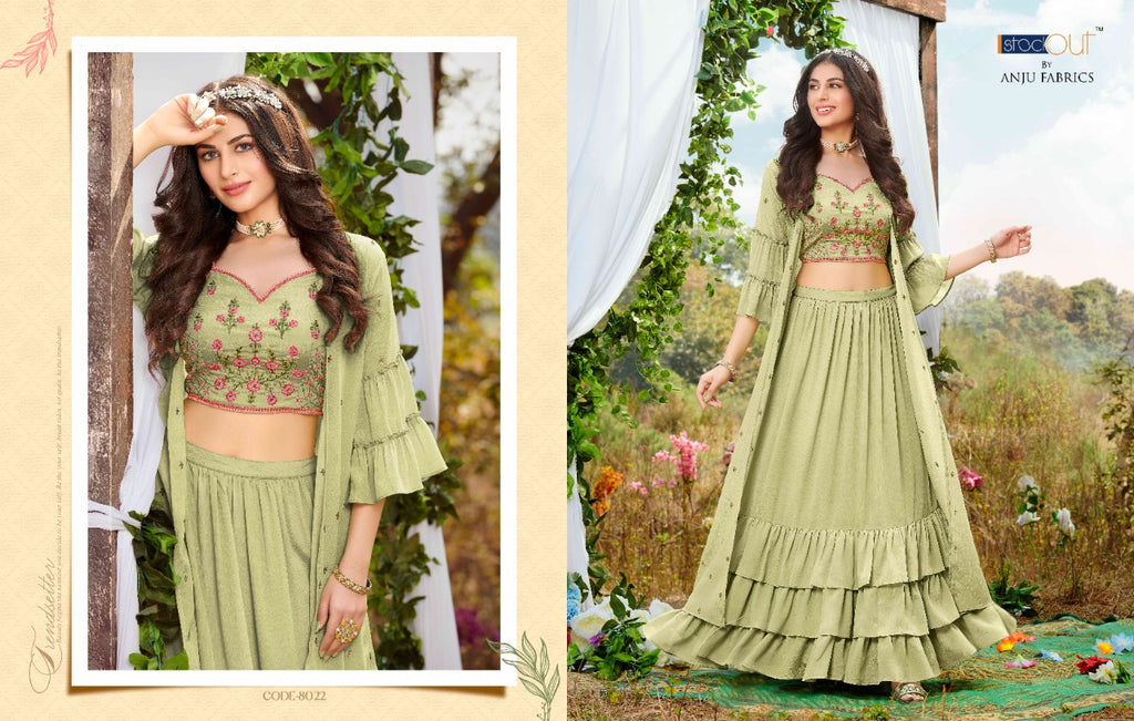 Details : Crop Top Fabric : Chinon Chiffon With Hand Work Skirt Fabric : Chinon Chiffon With Can Can Shrug Fabric : Chinon Chiffon With Sequence Work Work : Exclusive Handwork With Sequence Embroidery Sizes : M , L, XL, 2XL, 3XL |