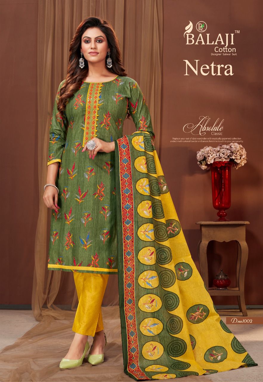 Balaji Cotton Netra Vol 1 Exclusive Collection Of Festive Wear Salwar Kameez With Embroidery