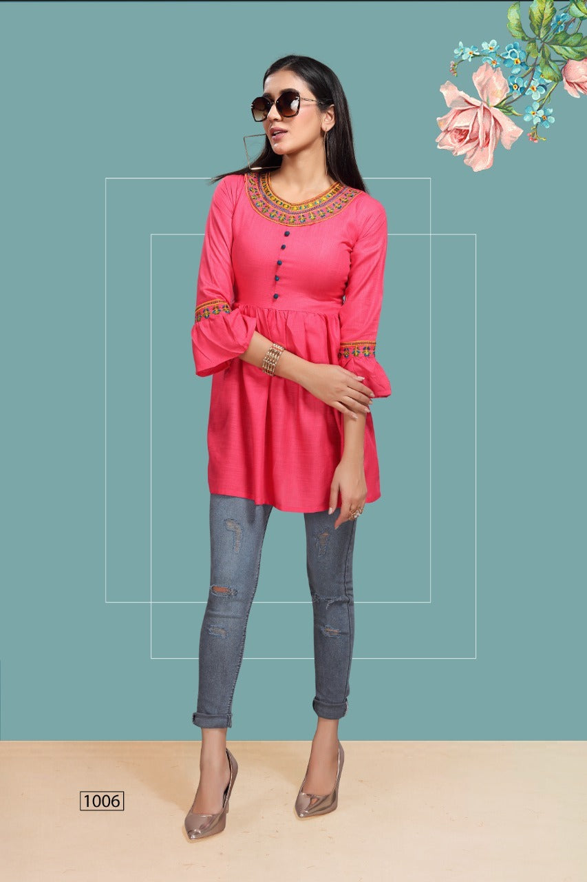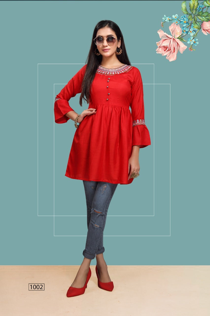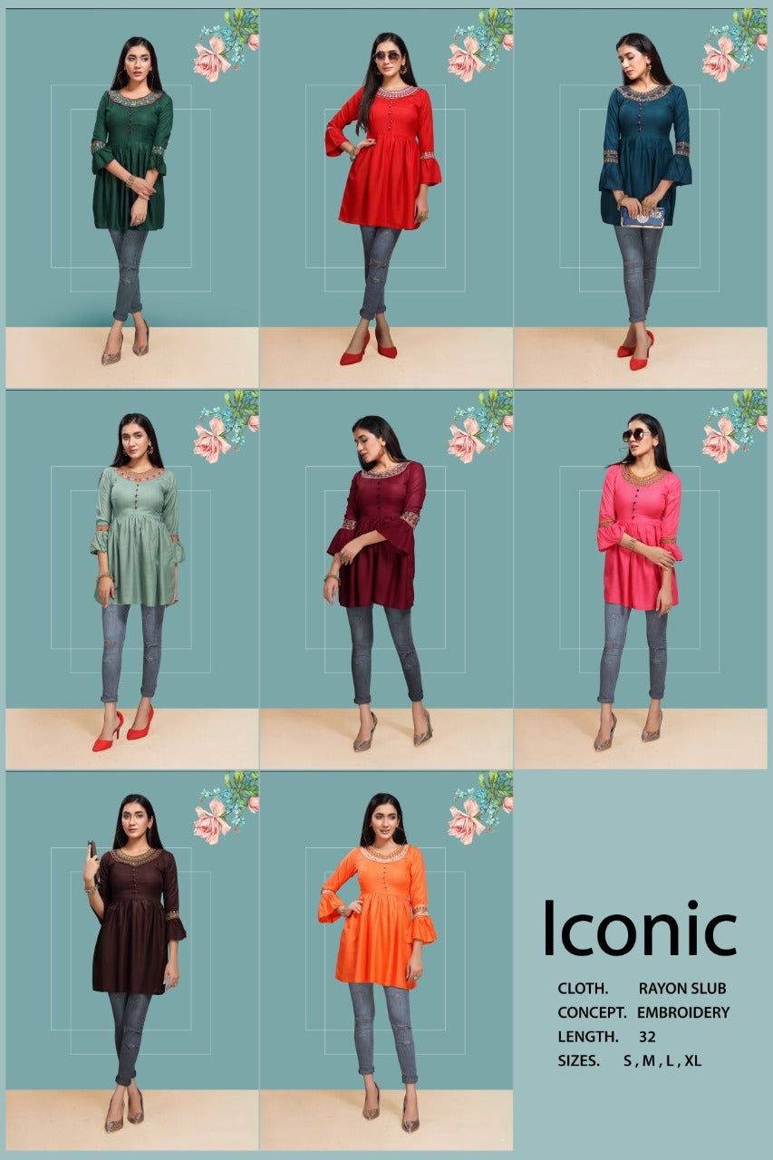 Fly Free Iconic Vol 3 Rayon Embroidery With Flair Fancy Short Kurtis