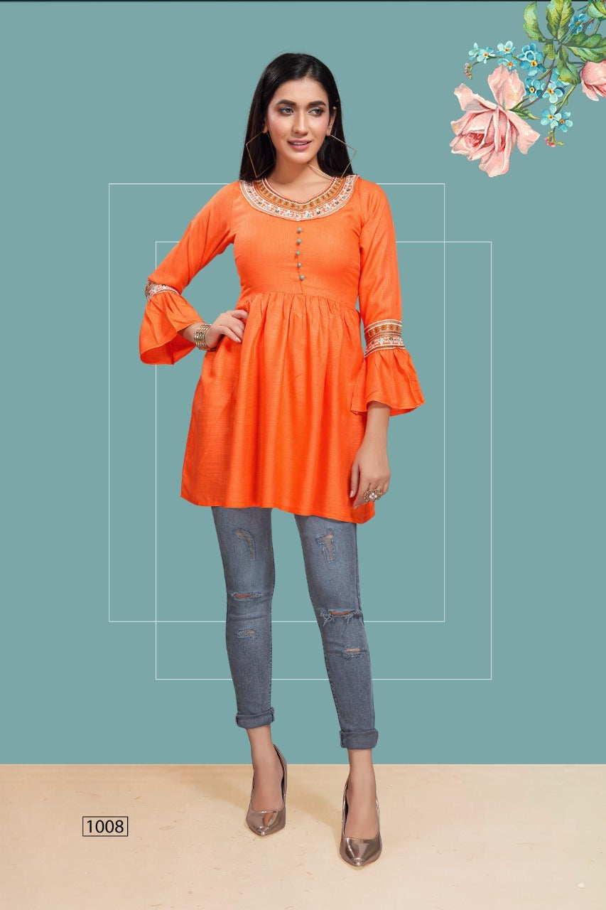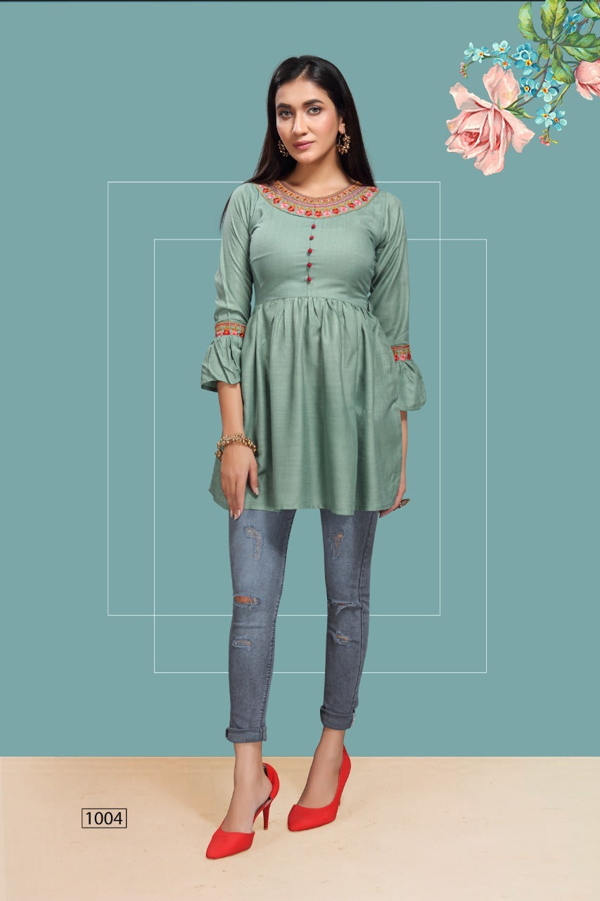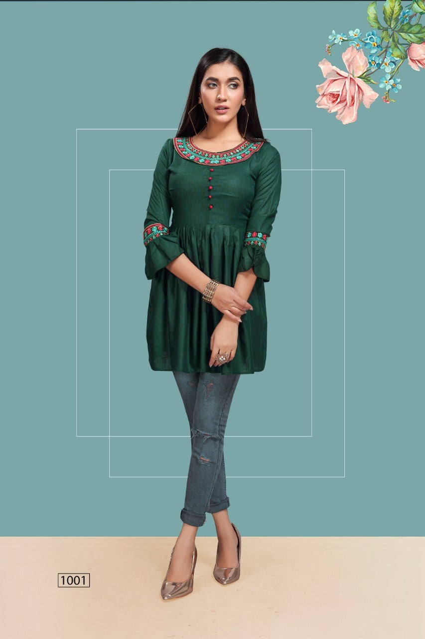Fly Free Iconic Vol 3 Rayon Embroidery With Flair Fancy Short Kurtis