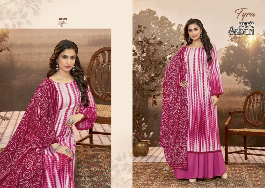 Fabric Details : Top : Soft Cotton Saburi Print With Fancy Mirror Work Bottom : Pure Soft Cotton Solid Dupatta : Pure Cotton Mul Mul With Bandhani Print |