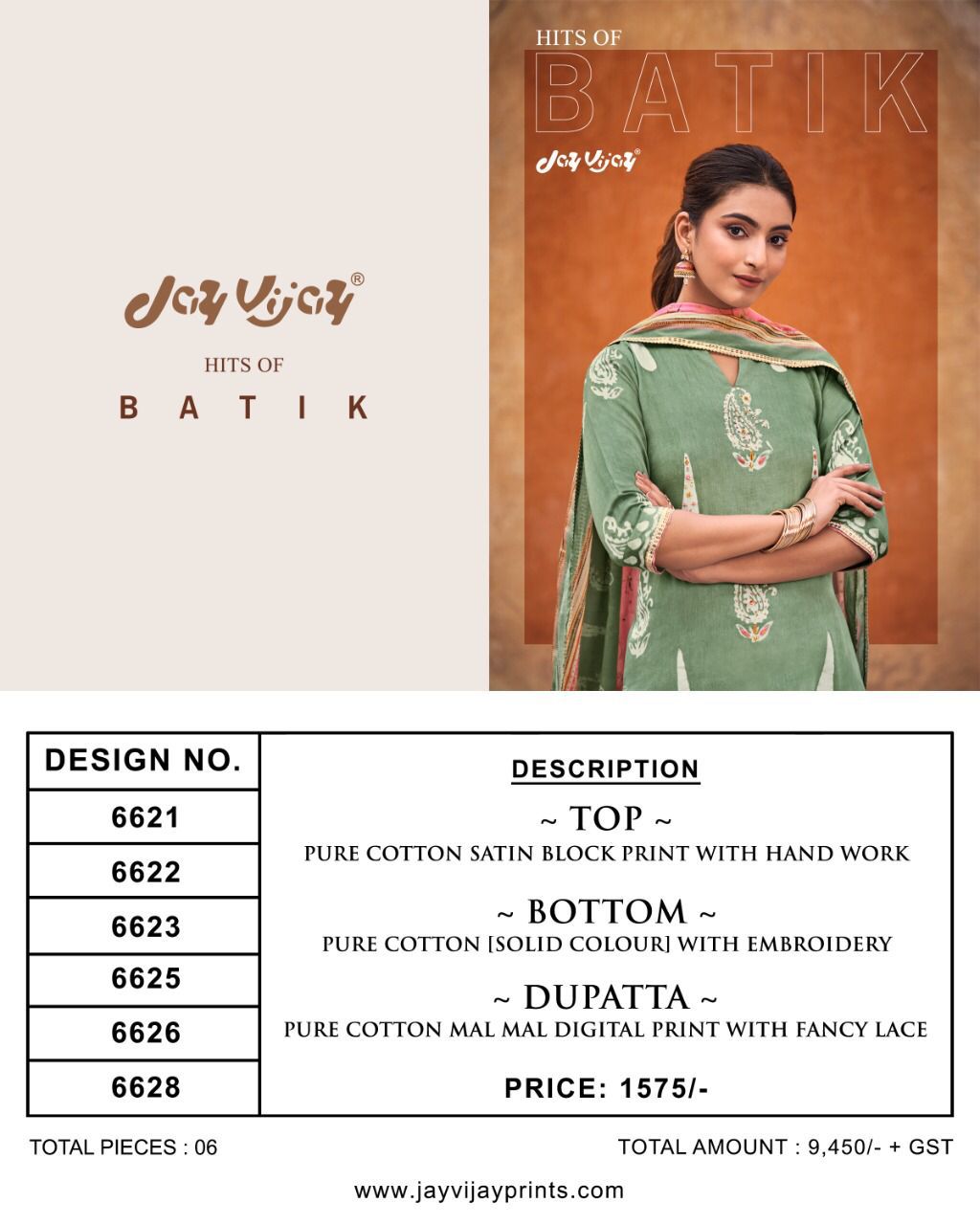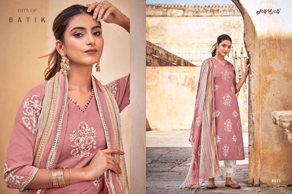 Jay Vijay Dno 6621 To 6628 Pure Cotton With Hand Work Embroidery Stylish Designer salwar Suit