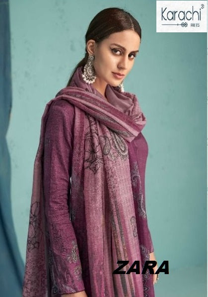 Karachi Zara Jam Satin With Printed Stylish Designer Festive Wear Salwar Suit