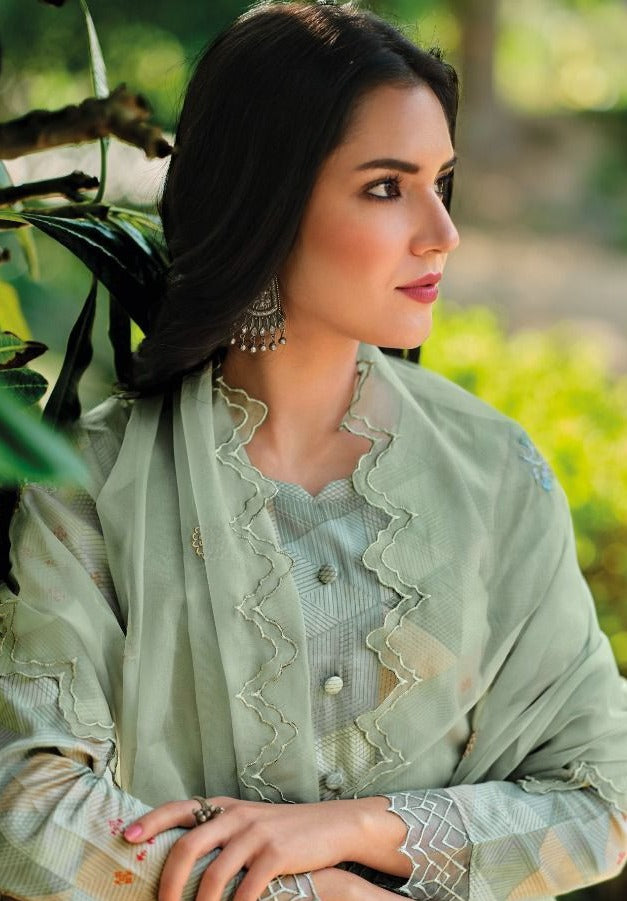Fabric Details : Top : Pure Jam Cotton With Fancy Embroidery & Digital Print Bottom : Pure Cotton Solid Dupatta : Pure Viscose Organza With Fancy Embroidery |