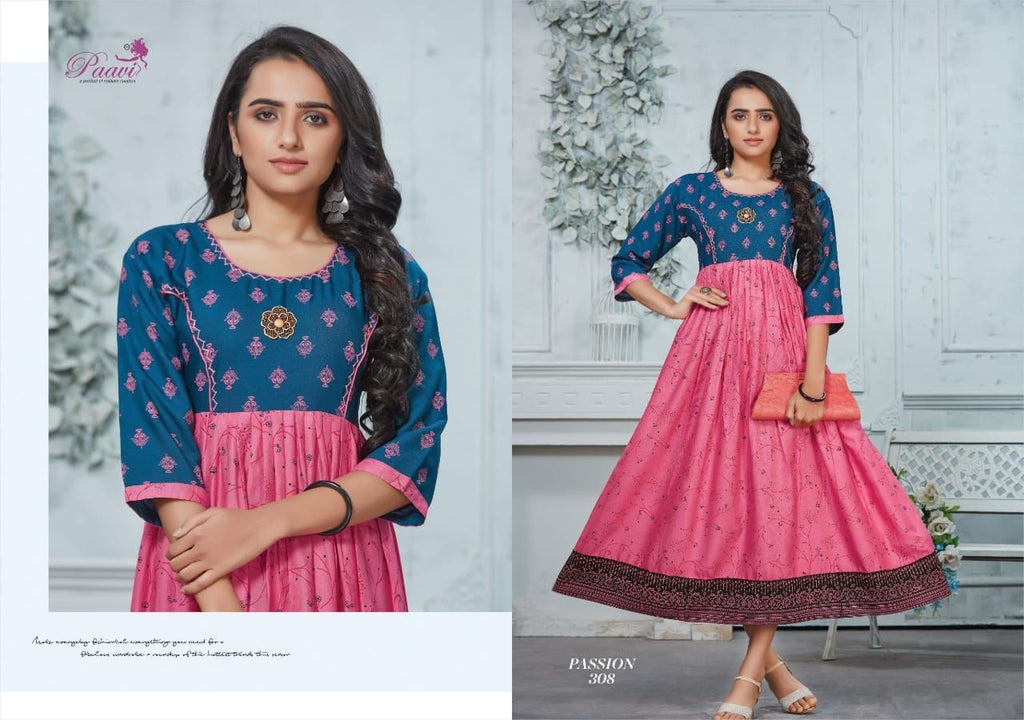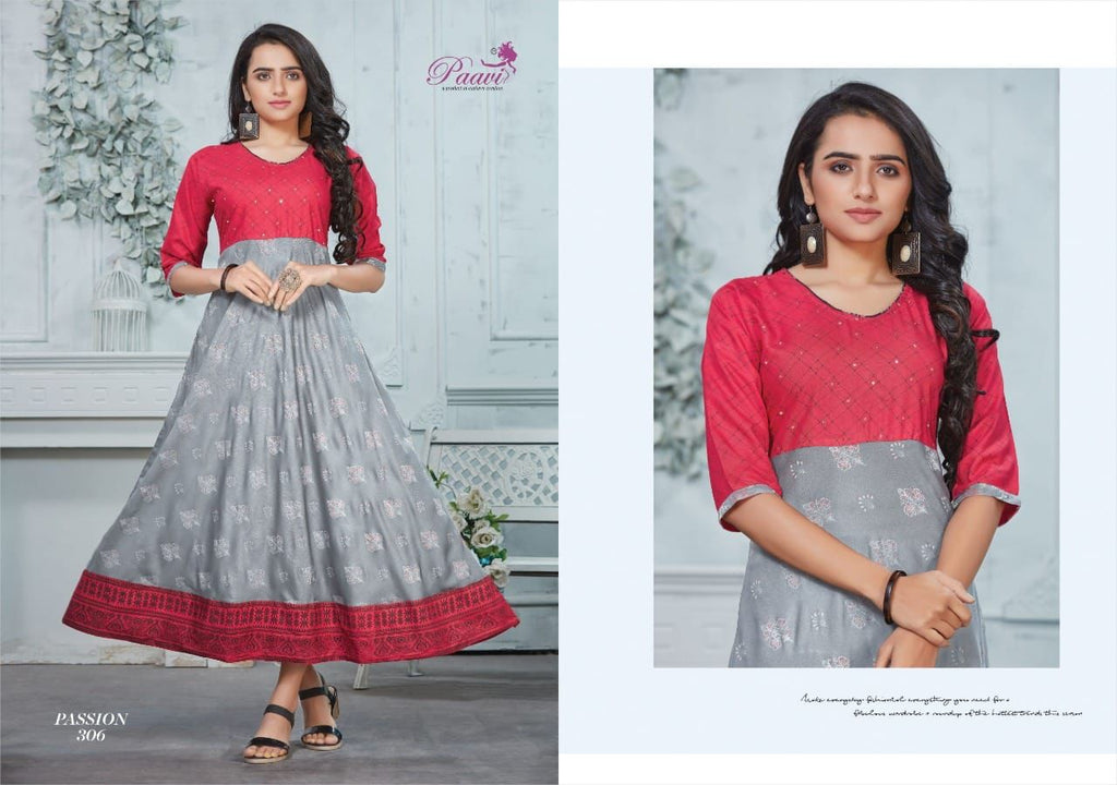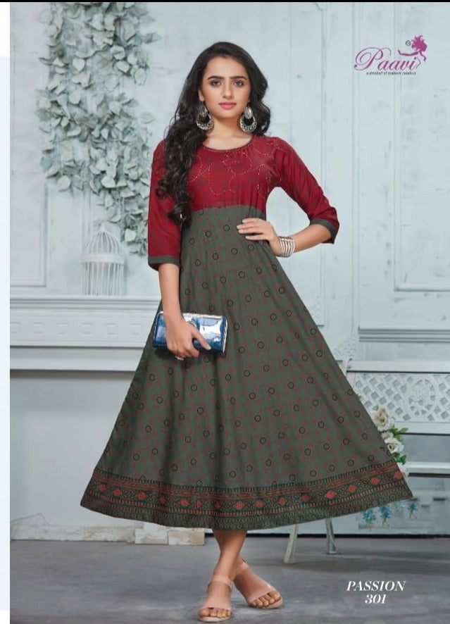 Fabric :- Reyon print Concept :- Long Ghera Top With Manual Work SIZE :- M L XL 2XL 3XL Length-48 |