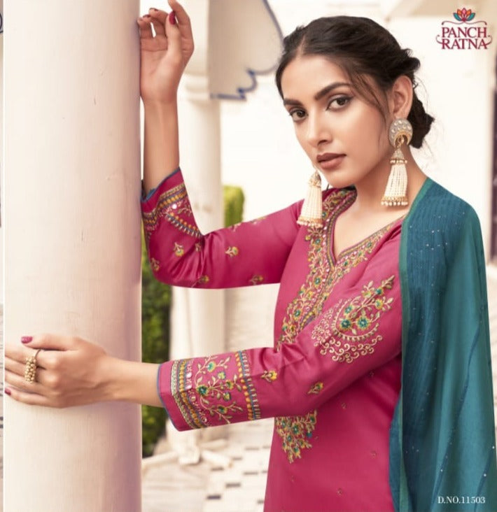 Fabric Details Top :- Jam Silk Heavy Sliver Work & Swarovski Diamond Bottom :- Rayon Dupatta :- Pure Viscose 2mm Weaving Sequence With Tassels |