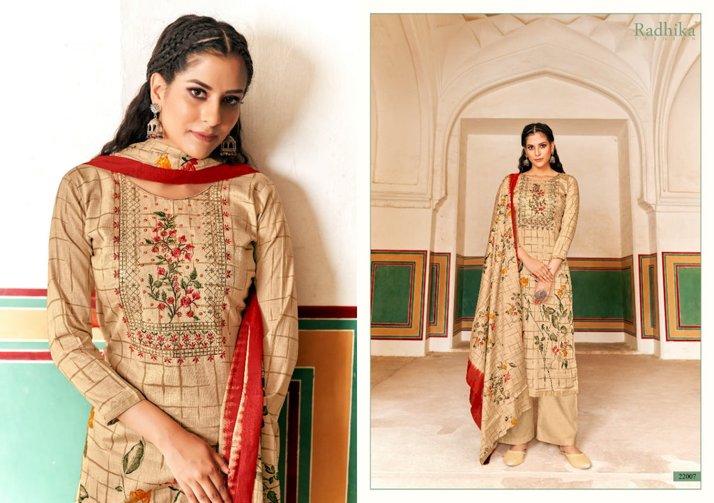 Fabric Details : Top: Jam Cotton Designer Print With Neck Embroidery Work Dupatta: Mal Cotton Print Bottom: Cotton |