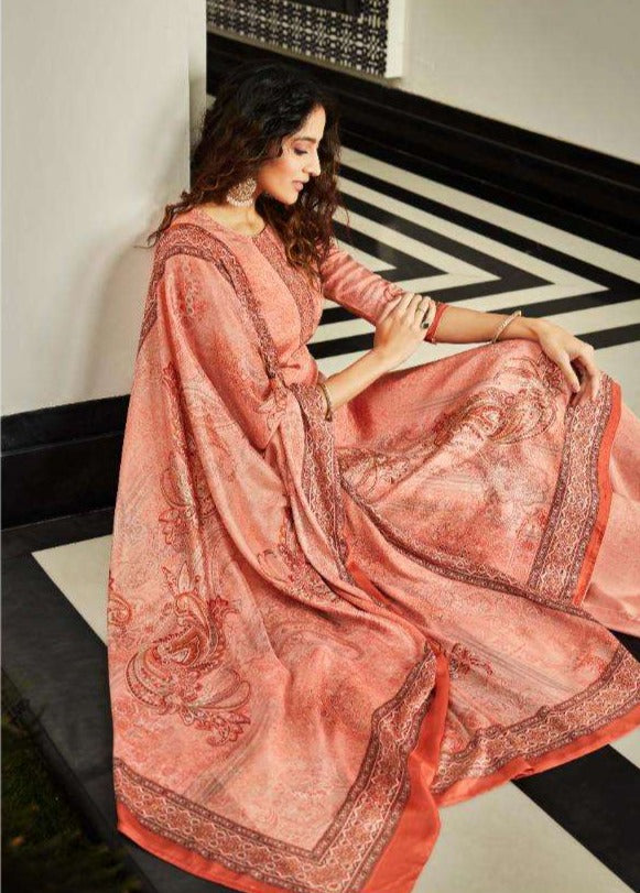 Fabric Details ; Top : Pure Crape With Digital Print Foil Work Dupatta : Pure Chinon Digital Print With Tussal Bottom : Digital Printed Pure Crape |