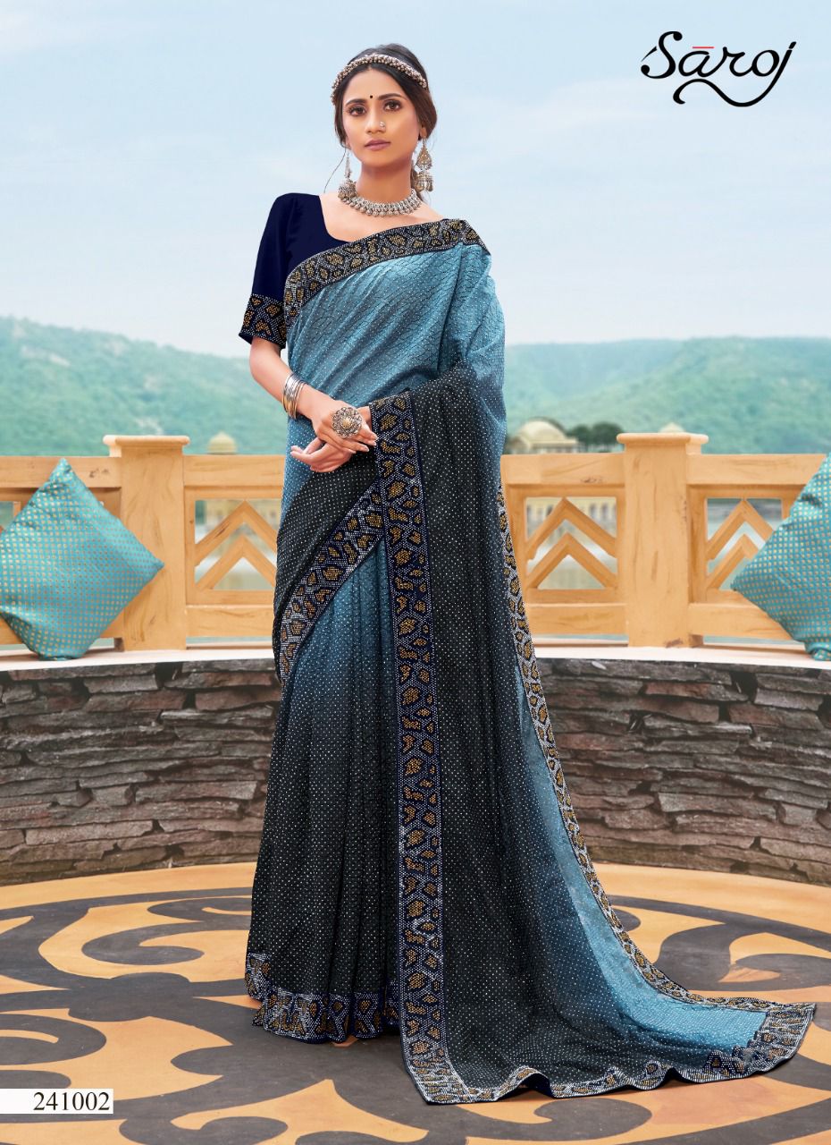 Saroj Sayraa Rasal Net With Crystal Work Stylish Party Wear Sarees