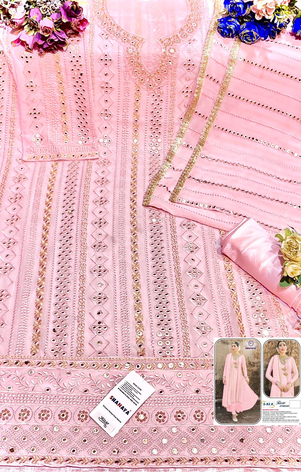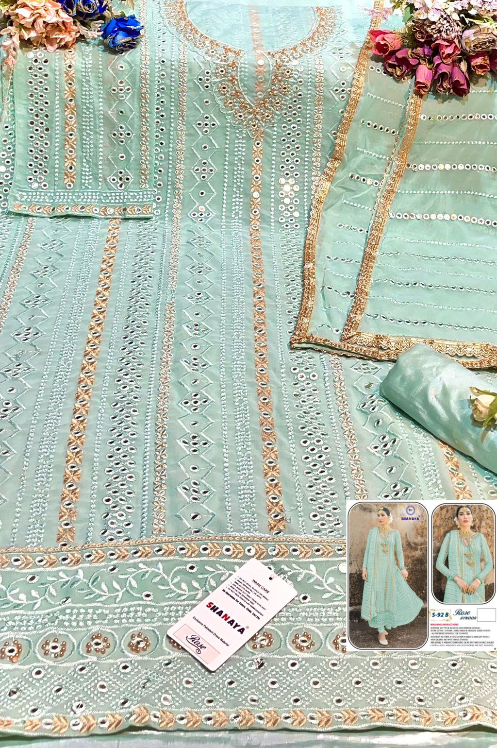 Fabric Details : Top :- Heavy Fox Georgette Embroidered With Handwork Dupatta :- Heavy Fox Georgette ( Heavy Embroidery Work ) Inner:- Santoon Bottom :- Santoon |