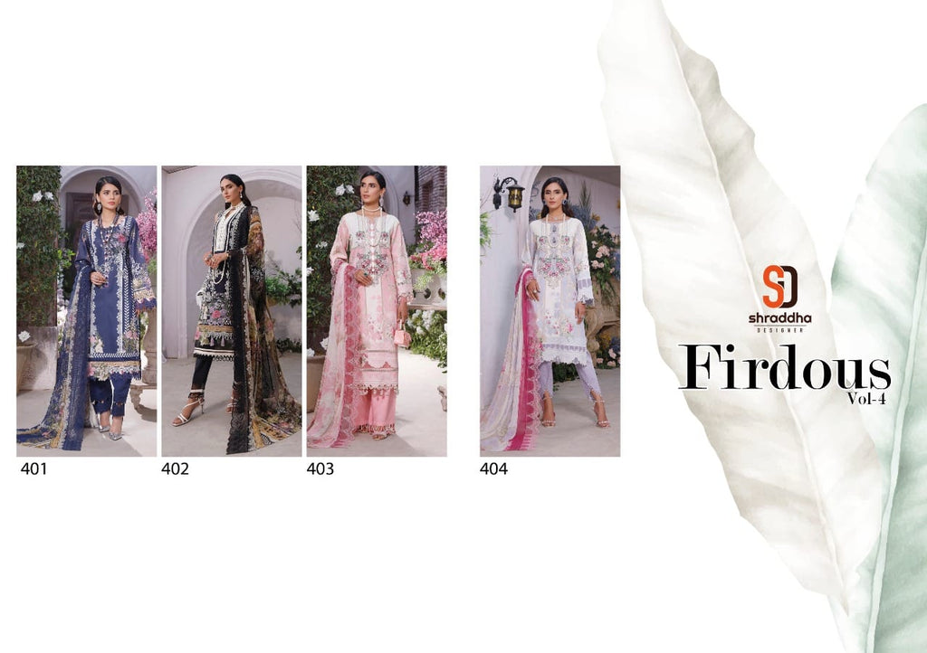 Sharadha Firdous Vol 4 Pure Cotton With Heavy Embroidery Work Stylish Designer Pakistani Salwar Suit