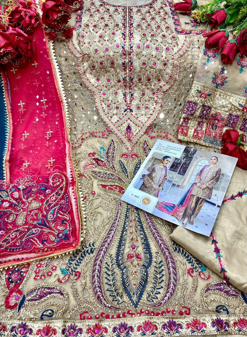Other Details | FABRIC DETILAS TOP:-TISSUE with WORK BOTTOM/INNER:-SANTOON with WORK DUPATTA:-NET with EMBROIDERY WORK |