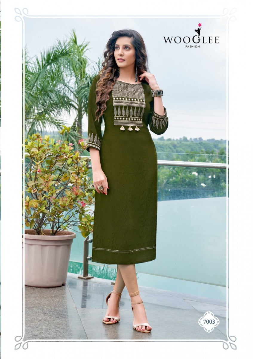 Wooglee 4 Ever Nylone Viscose Embroidery Handwork Kurtis