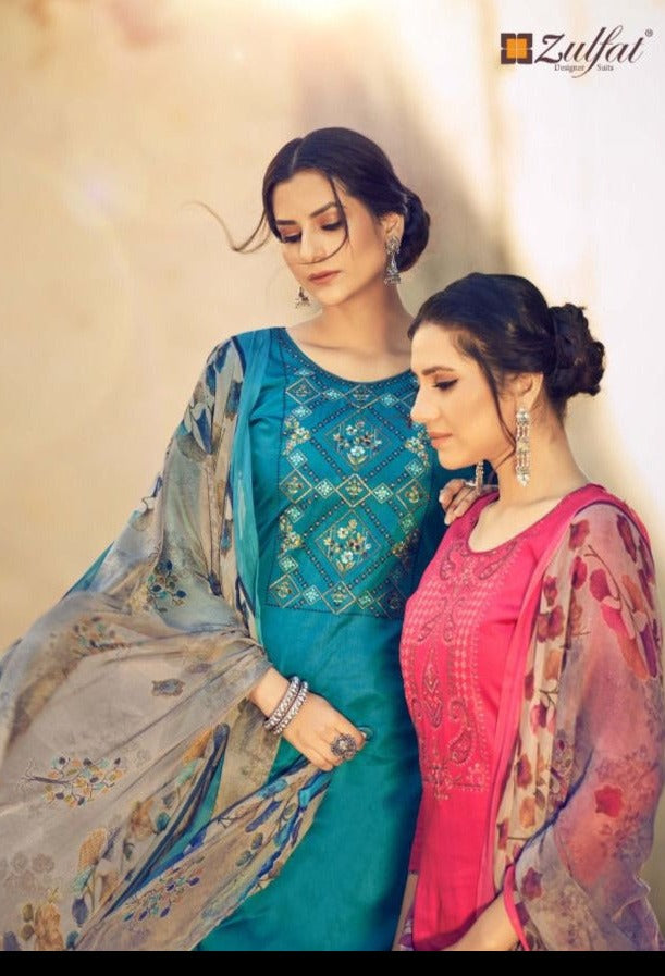 Fabric Details : Top: 100% Pure Heavy Jam Cotton With Heavy Embroidery (2.50 Mtrs) Dupatta: Pure Nazneen Chiffon (2.30 Mtr) Bottom: Pure Soft Cotton Printed Salwar (3 Mtrs Apx) |