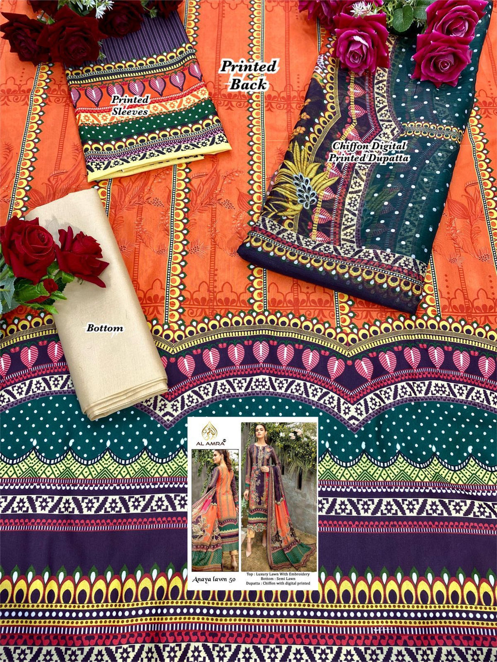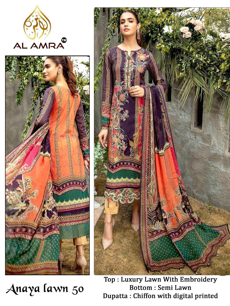 Al Amra Dno Anaya Lawn 50 Georgette With Emeroidery Work Stylish Designer Pakistani Salwar Suit