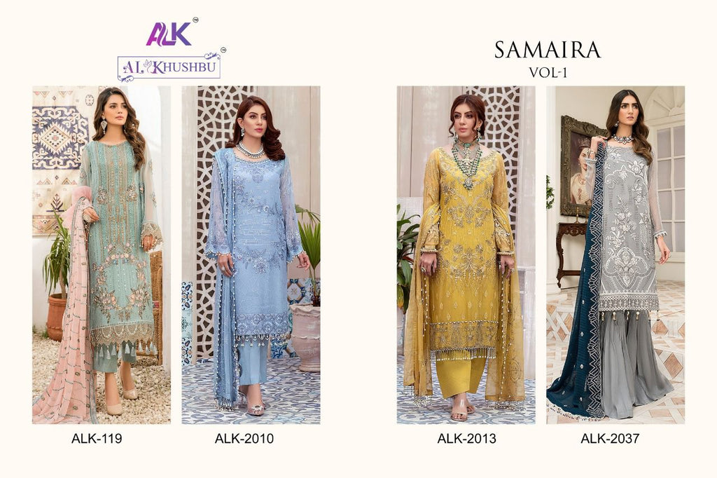 Details : Top : Georgette With Heavy Embroidered Bottom :Santoon With Work Dupatta : Nazmin With Heavy Embroidered Inner :- Santoon |