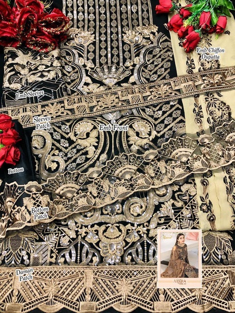 Fabric Details : Top : Fox Georgette With Heavy Embroidery Bottom : Santoon Inner- Santooon Dupatta : Pure Nazneen (*Dn 1701 Pure Muslin Jacquard Dupatta*) |