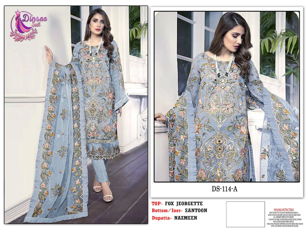 Dinsaa Suit Dno 114 A Georgette With Heavy Embroidery Stylish Designer Pakistani Party Wear Salwar Kameez