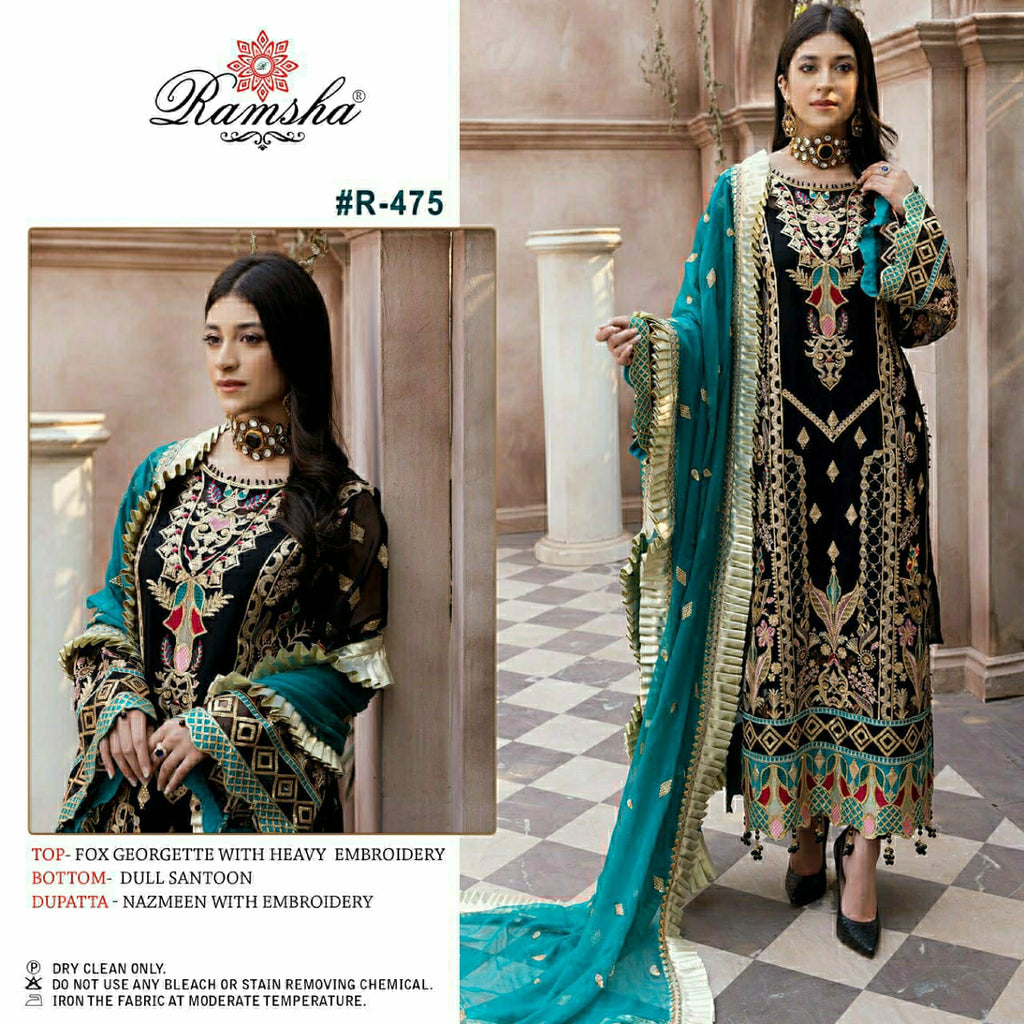 Ramsha R 475 Georgette Embroidered Designer Pakistani Style Wedding Wear Salwar Suits