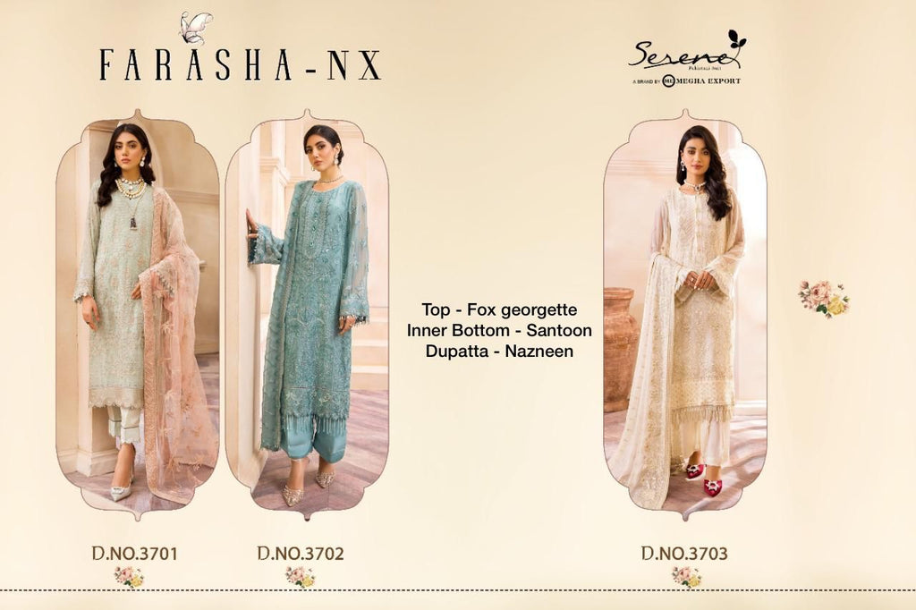 Serene Farasha Nx Fox Georgette Heavy Designer Pakistani Style Party Wear Salwar Suits With Heavy Embroidery Work