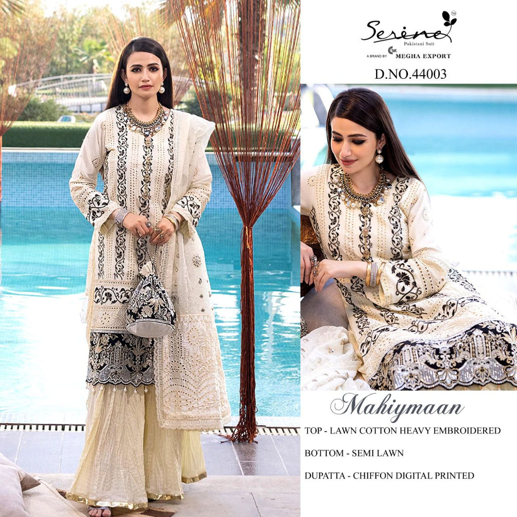 Fabric Details: *Top : Lawn Cotton Heavy Embroidered * *Bottom – Semi Lawn Cotton* *Dupatta : Chiffon Digital Printed* |