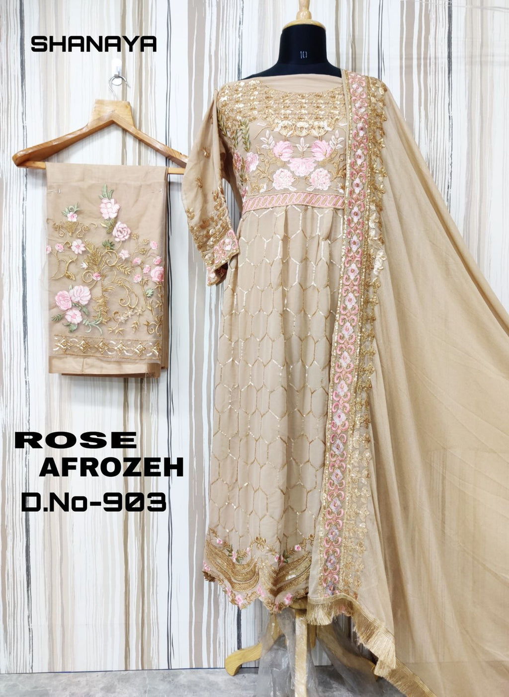 Fabric Details Top : Fox Georgette ( Heavy Embroidery) Bottom : Santoon (With Pecha) Inner : Santoon Dupatta : Heavy Nazmeen ( Heavy Work & 2 Side Fancy Lace) |