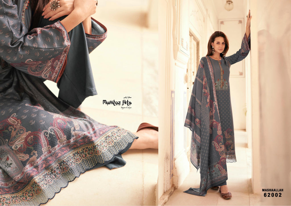 Mumtaz Arts Mashallah Pashmina Digital Printed With Heavy Neck Work Suit Collection