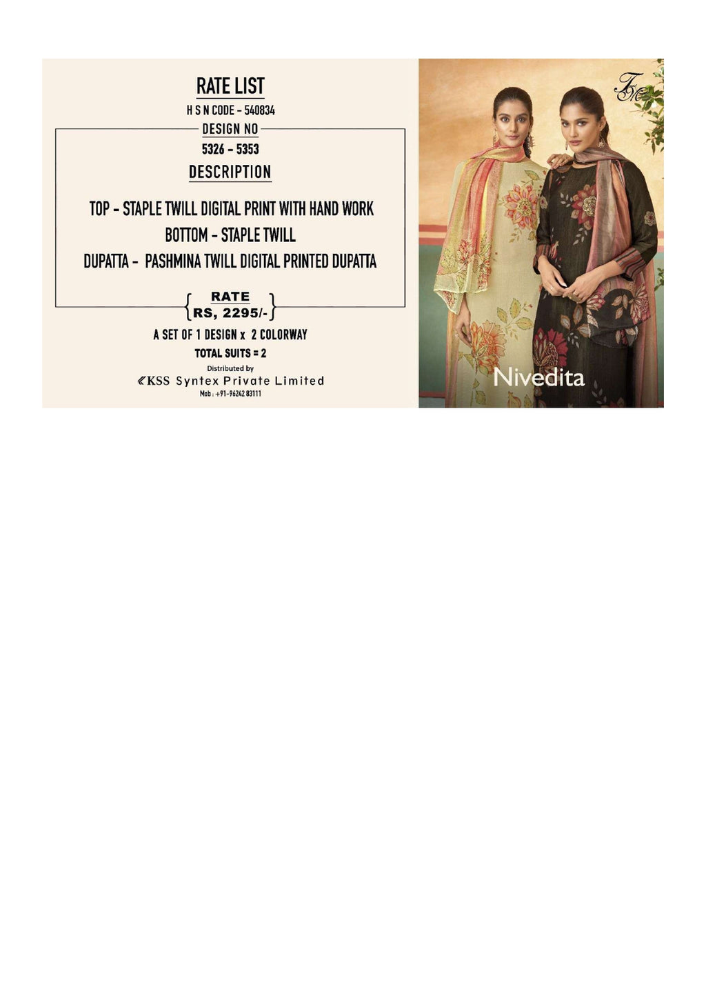 Top:- staple twill digital print with handwork Bottom:- staple twill Dupatta:- pashmina twill digital printed dupatta |