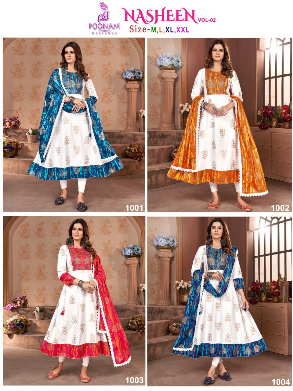 Poonam Nasheen Vol 2 Rayon With Printed Work Stylish Designer Party Wear Fancy Kurti