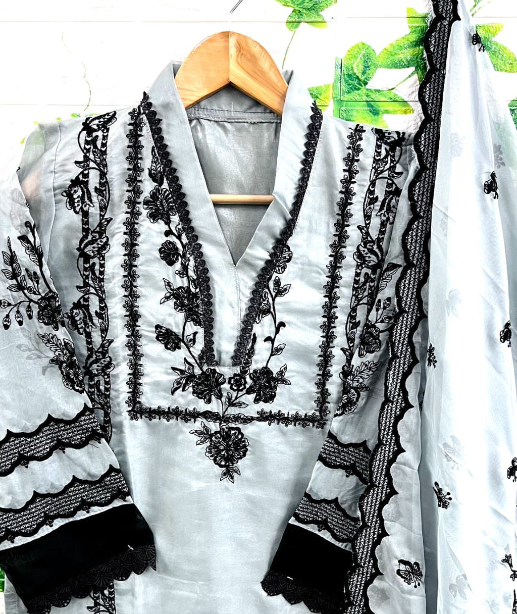 Top:- Organza With Heavy Khatli Work With Superior Hand Work Havey Selves Work |