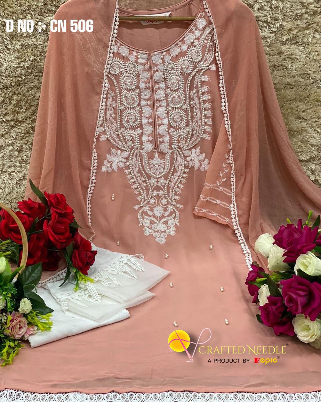 Crafted Dno 506 Fox Georgette With Heavy Embroidery Work Stylish Designer Party Wear Pret Kurti