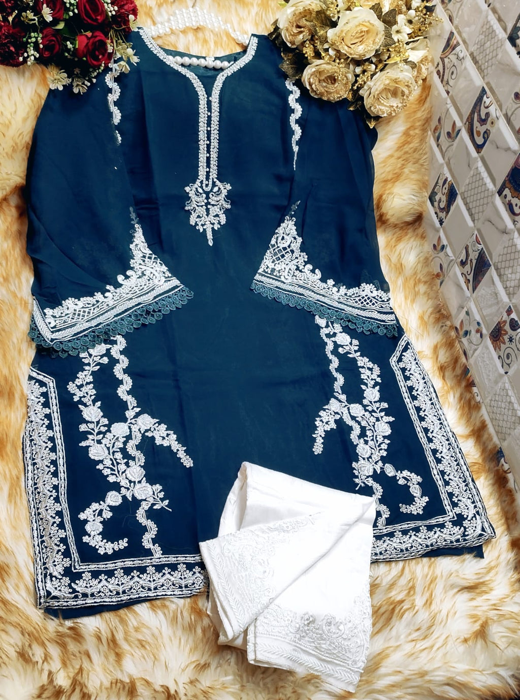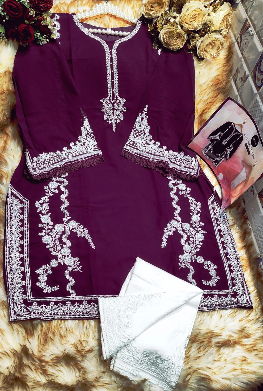 Top:-heavy Fox Bluming Fabric With Havy Embroidery Work With Dimond Machine Moti Work