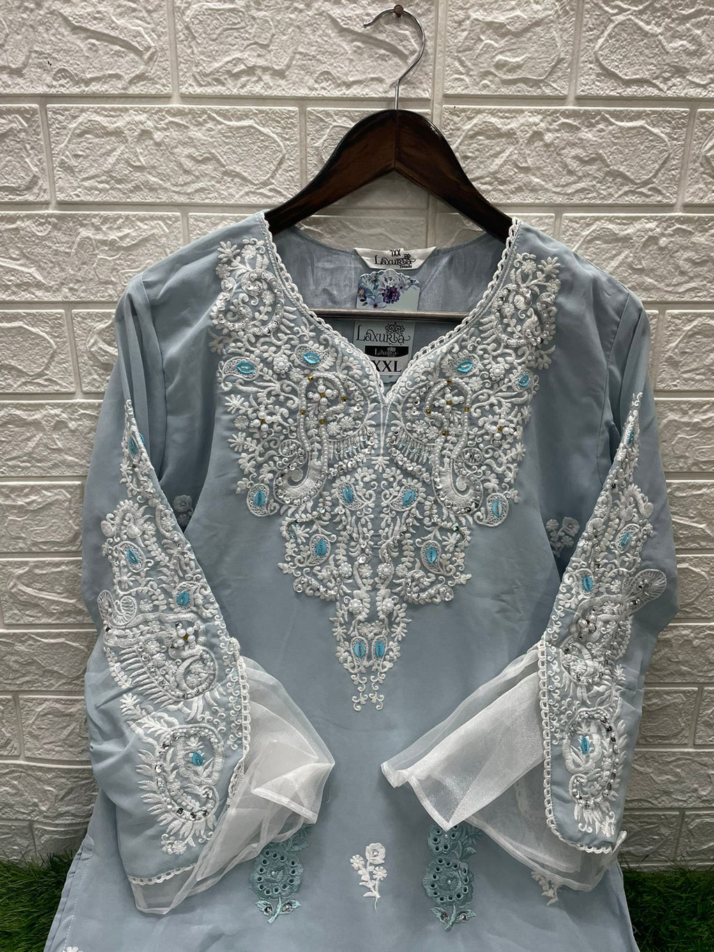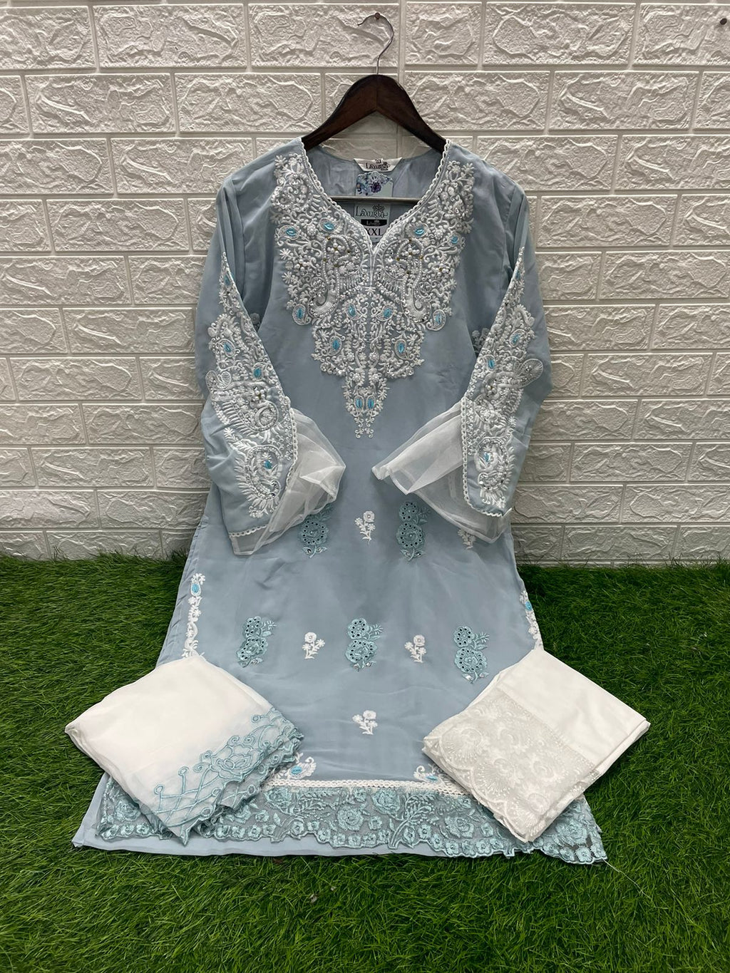 Other Details | Top:- Faux Georgette Inner:- Santoon Dupatta:- Naznin Pant :- Cotton Strachble |