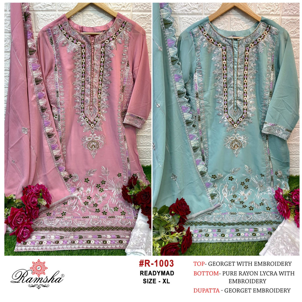 Ramsha Dno R 1003 Georgette With Heavy Embroidery Work Stylish Designer Party Wear Pret Kurti