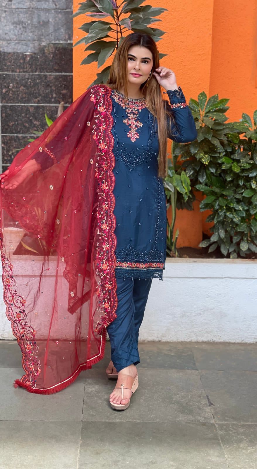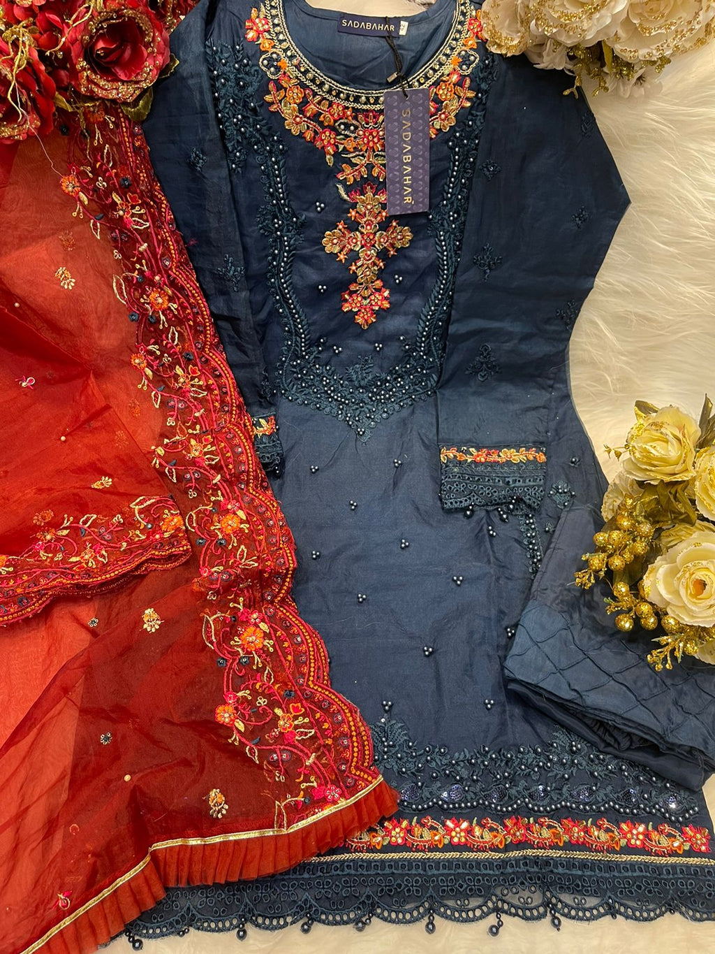 Sada Bahar Dno 009 Organza With Heavy Embroidery Work Stylish Designer Fancy Pret Kurti