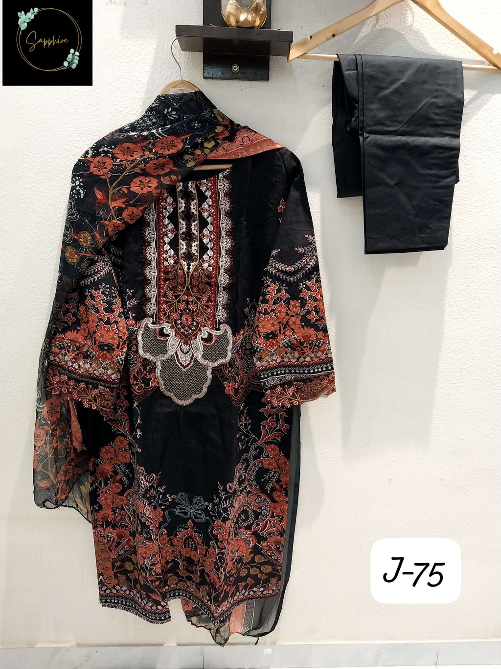 eadymade Lawn Suits With Heavy Multiple Patches Fabrics :- Lawn Cotton With Patch Work & Multiple Patches Cotton Bottoms & Chiffon Dupatta Readymade Xxl Size |
