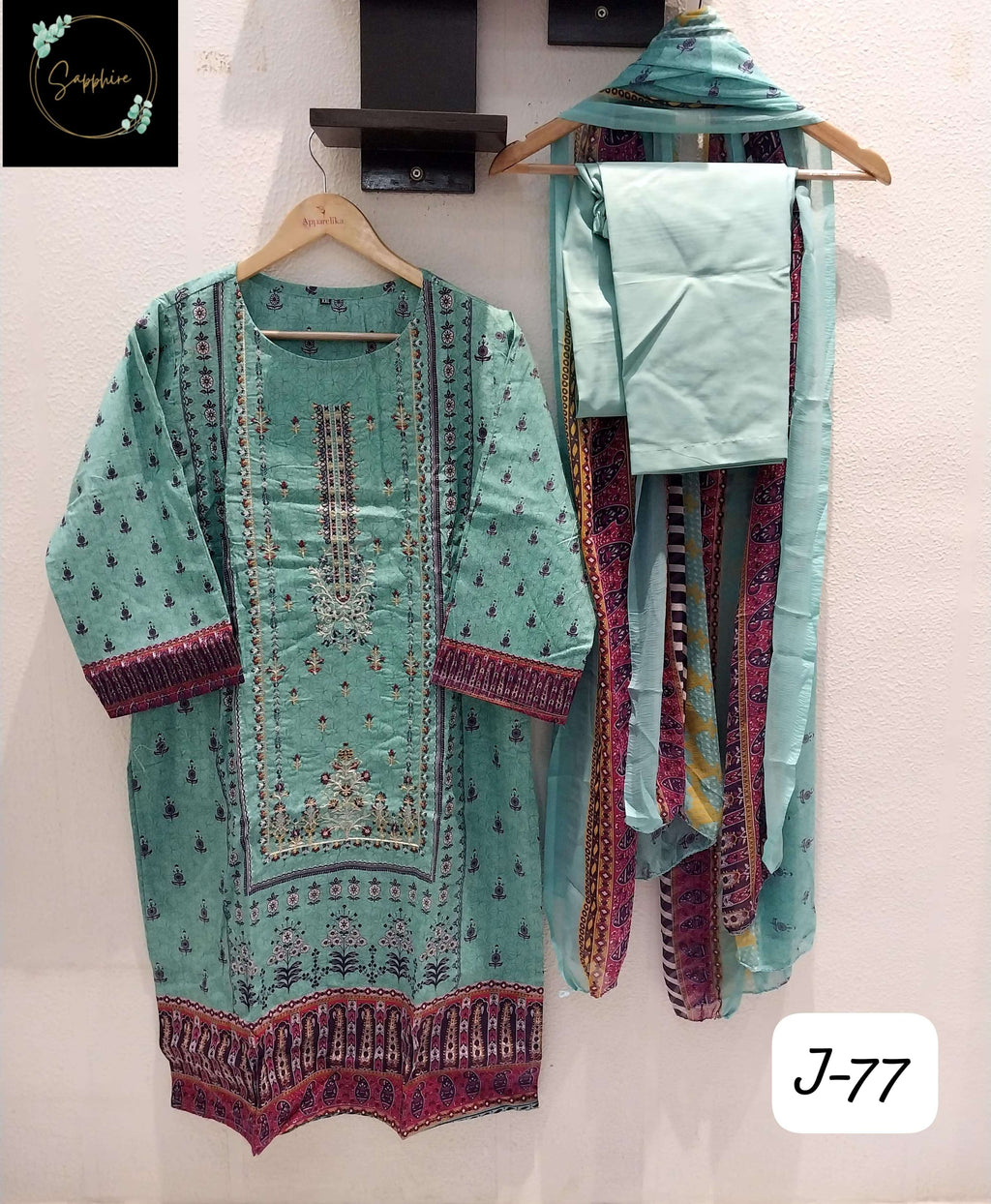 Fabrics :- Lawn Cotton With Self Embroidery & Cotton Bottoms & Chiffon Dupatta Readymade Xxl Size |