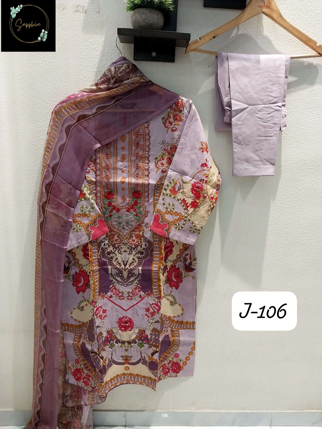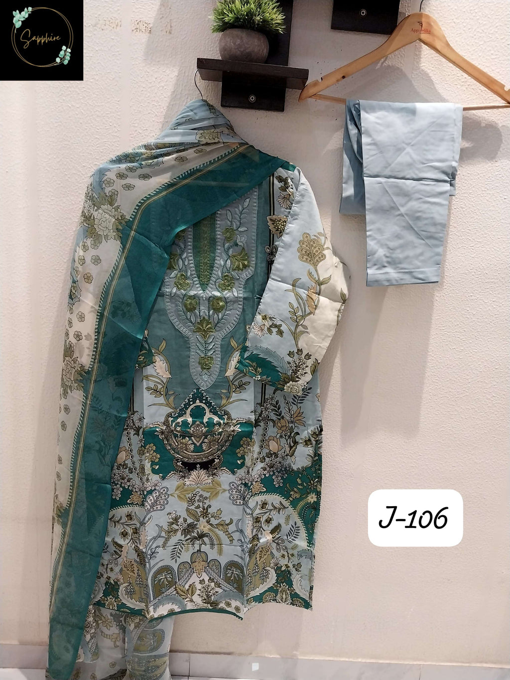 readymade lawn suits with heavy multiple patches fabrics :- lawn cotton with patch work & cotton bottoms & printed chiffon dupatta readymade xxl size sizes :- |
