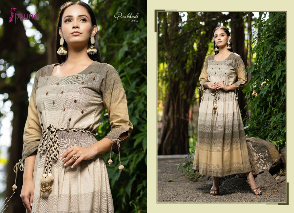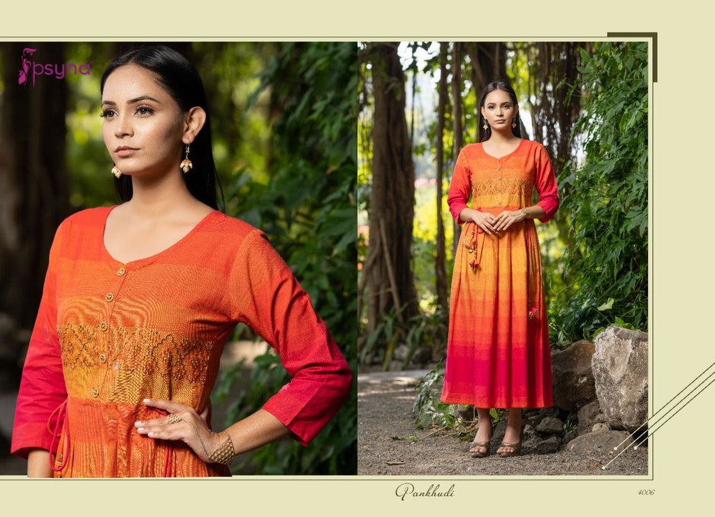 Psyna Pankhudi Vol 4 Cotton Party Wear Long Gown Type Kurtis