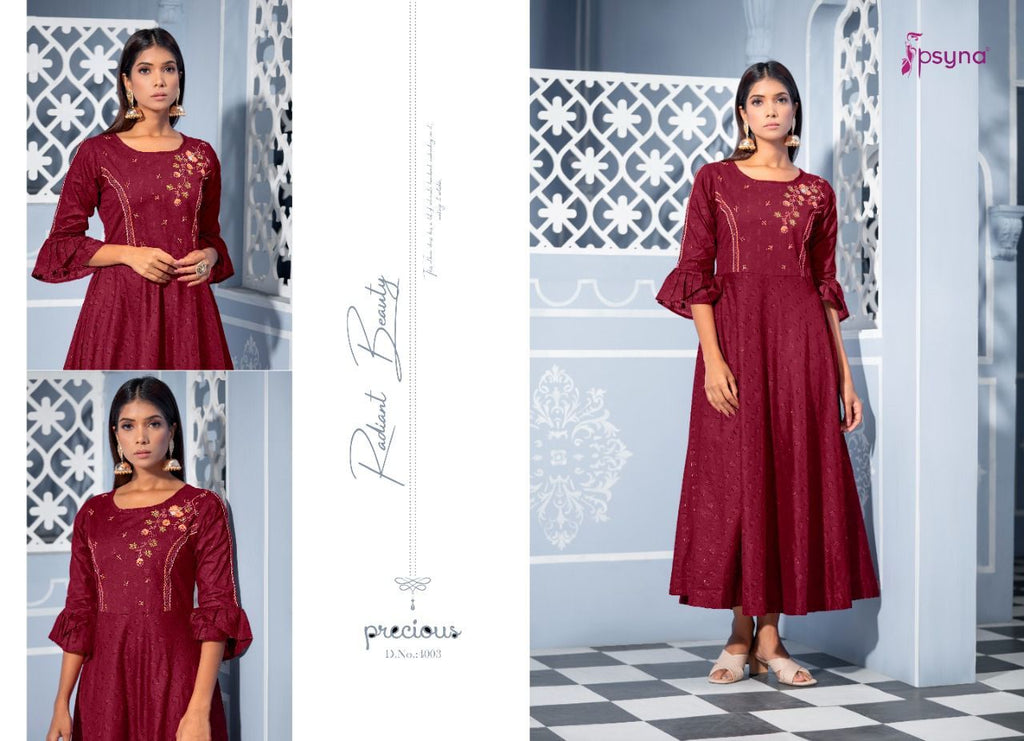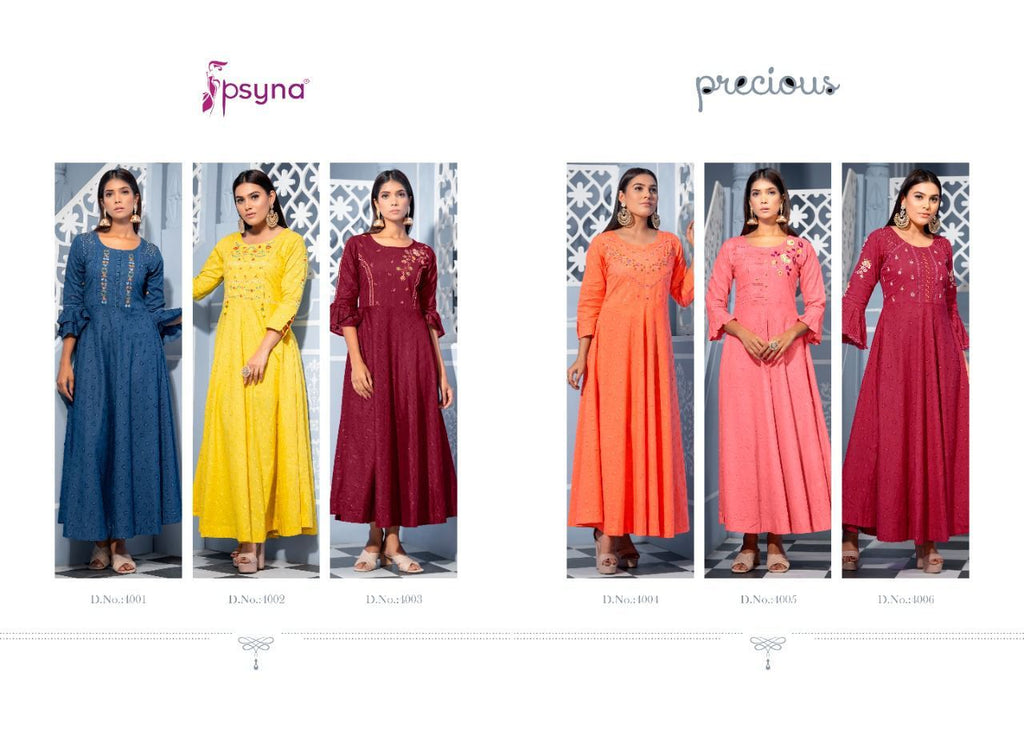 Psyna Precious Vol 4 Cotton Fancy Designer Gown Style Party Wear Kurtis