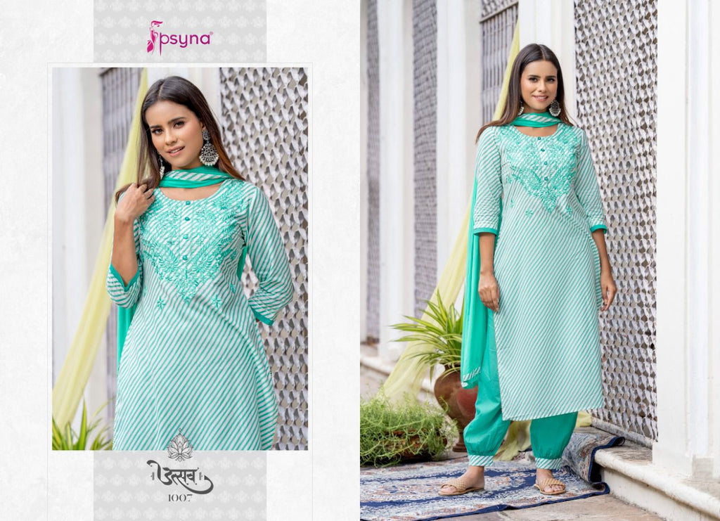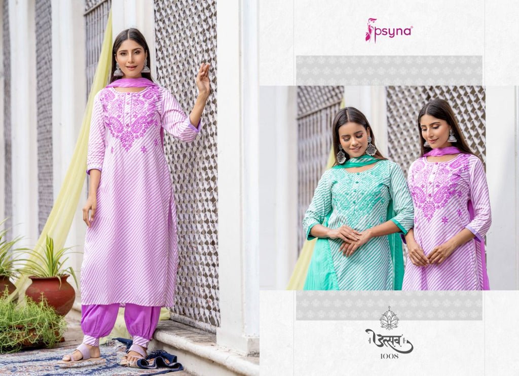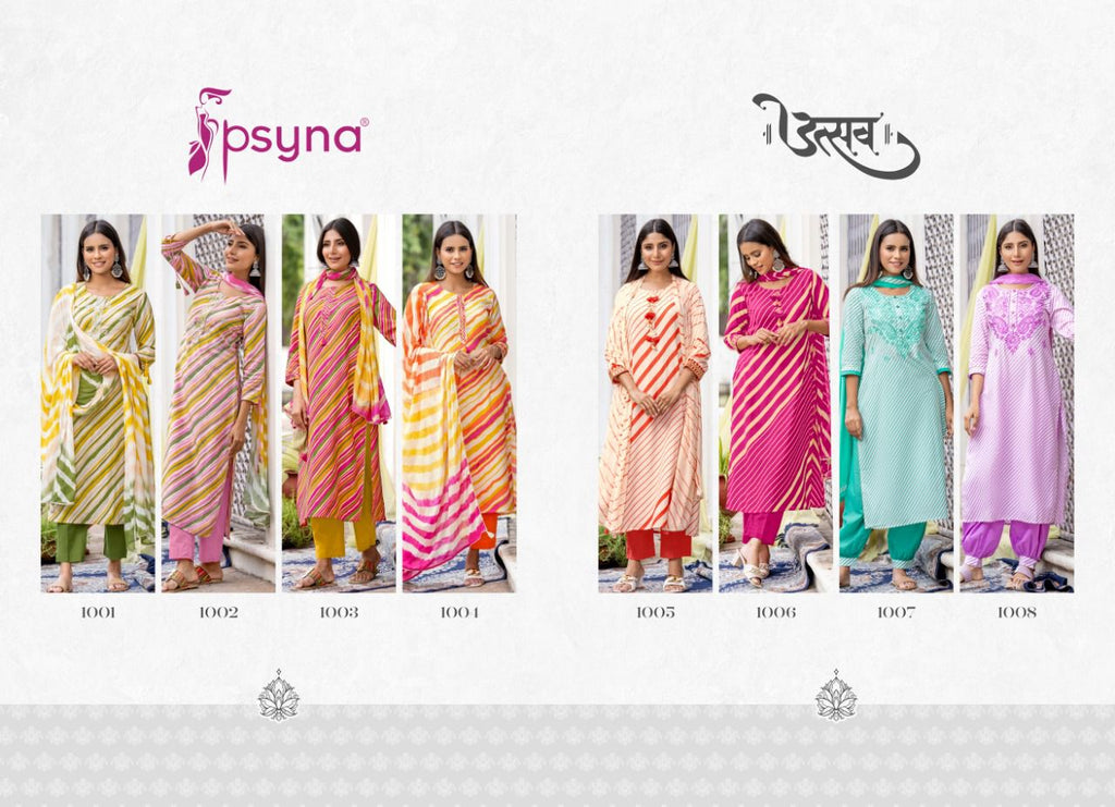 Psyna Utsav Dno 1001 To 1008 Rayon Printed Work Stylish Designer Party Wear Kurti