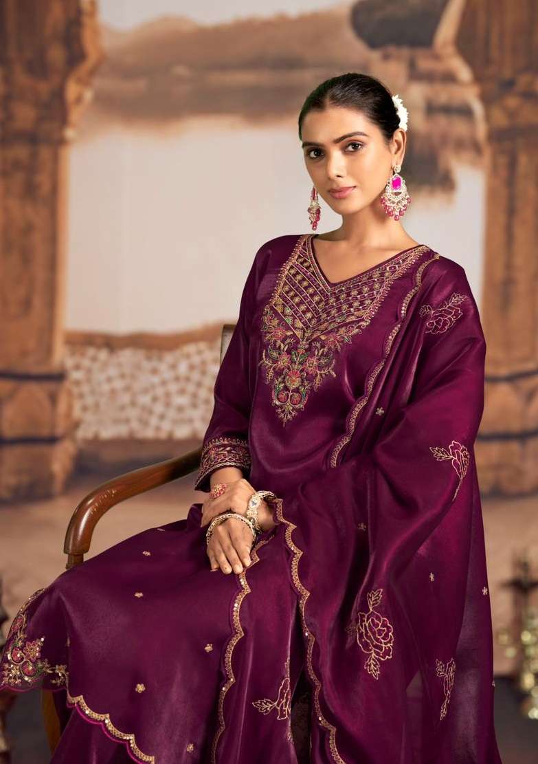 fabric details top:- pure satin crep with fancy embroidery work and khatli handwork mirror with full inner bottom:- pure satin crep with fancy work lace pant and full inner dupatta:- pure satin crep with heavy dupatta work total design:- 04 size:- m, l, xl, xxl, 3xl rate:- 1399/+gst |